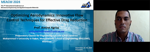 Prof. Amine Agriss from Preparatory Classes for Engineering Schools (CPGE) Meknes, Morocco delivered his keynote speech titled "Optimizing Aerodynamics: Innovative Flow Control Techniques for Effective Drag Reduction".