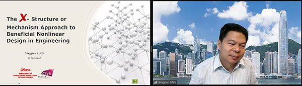 Prof.Xingjian Jing from City University of Hong Kong, China delivered his keynote speech titled "Beneficial Nonlinear Design in Engineering: The X-Structure/Mechanism Approach".